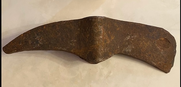 202-8 Someone sent in this axe head that they are trying to identify, please let us know if you can provide the answer. It was found in Iowa City over thirty years ago.