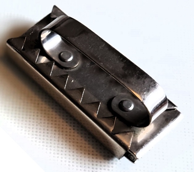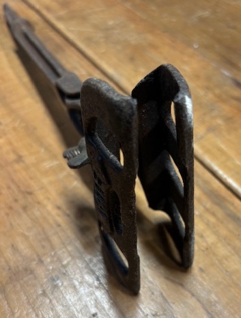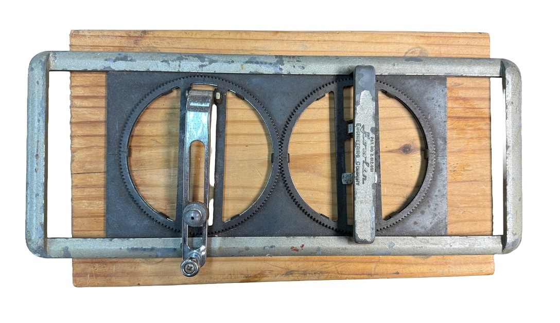 203-3 This device was used to hold a block of cheese while carving it. The photos below show it in both the open and closed positions.